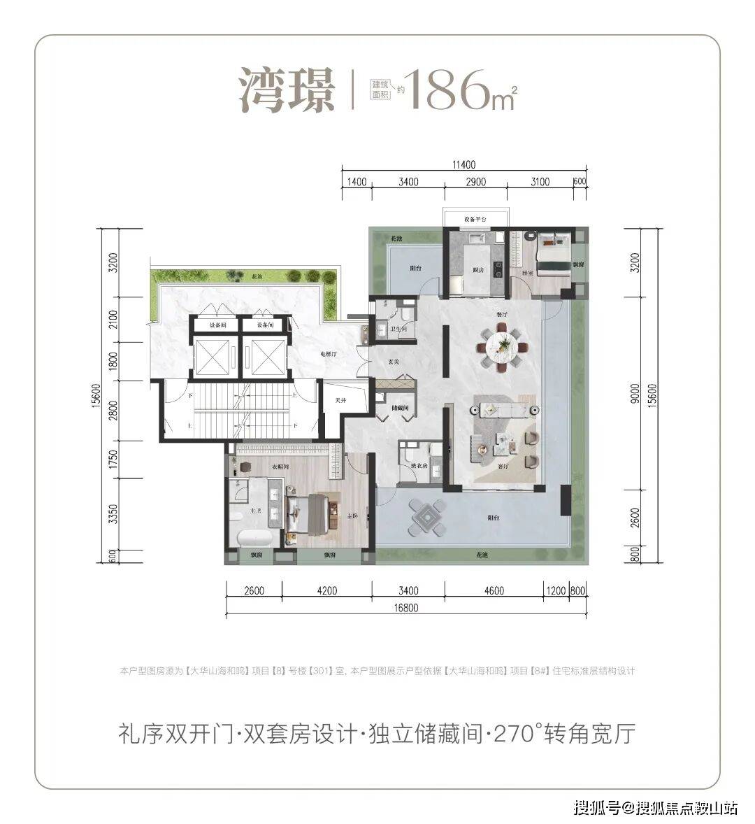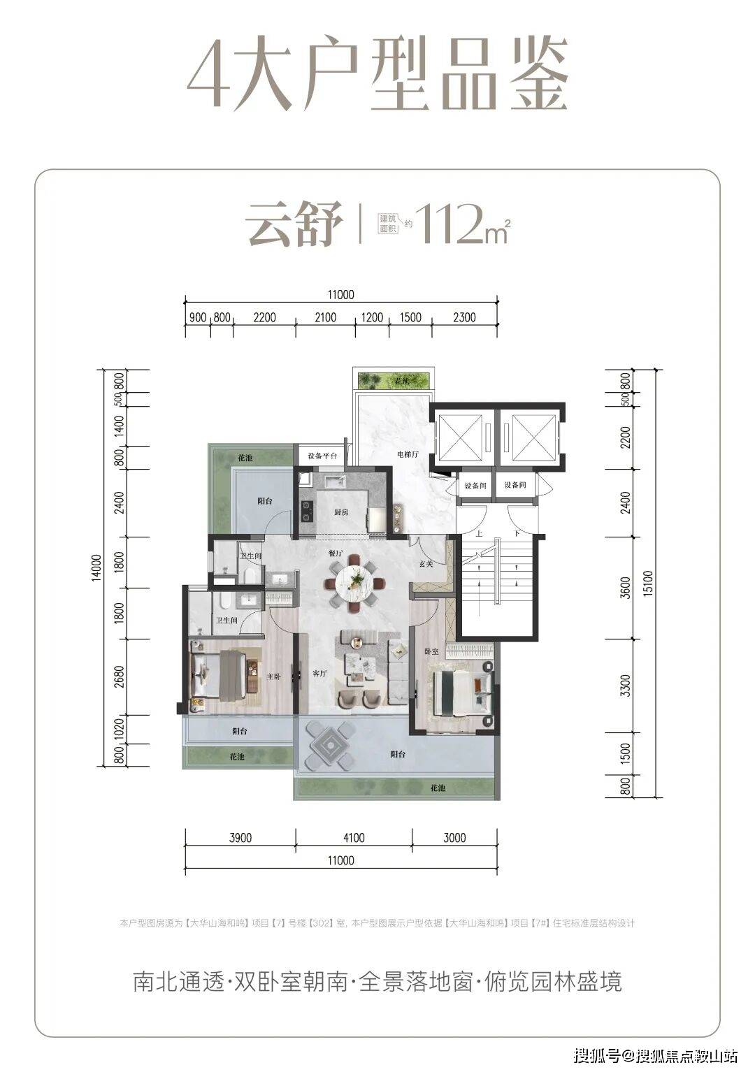 至高约16.8m四开间面宽朝阳,引阳光清风自由流动,空间明亮通透,匹配居者开阔的人生视野与格局。